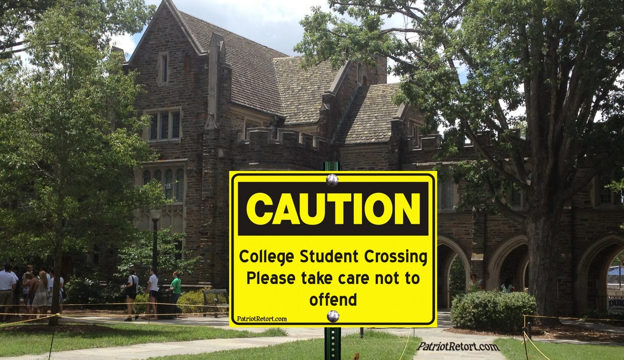 The message, of course, is a not-so-subtle shot across the bow of campus political correctness, a place where students revolt when a speaker with unacceptable views – almost always conservative -- is invited on campus or where the hyper-sensitive little darlings say they feel unsafe if someone wears a Halloween costume they don't like -- like at Yale last year.