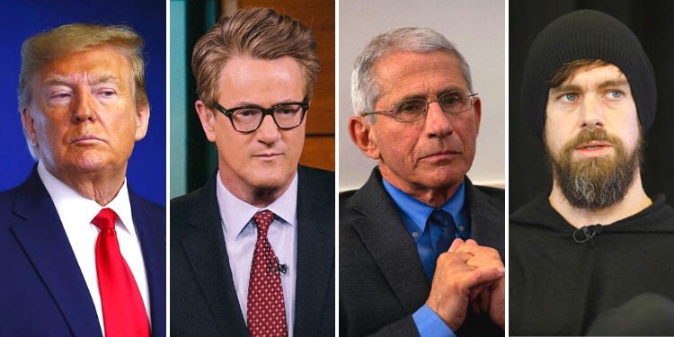 I'm not troubled, Joe, when Dr. Fauci (or anybody else) changes his position. Facts change. Opinions change. Anything said at the outset of the virus, means little -- because we knew little. That said, I trust Fauci. If I had to pick someone who's advice I would take, he'd be high on my list. Guess who would be at the bottom of that list. Initials: DJT.