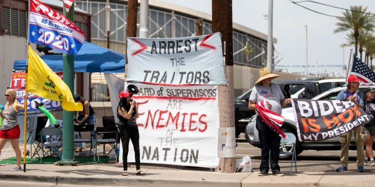In an article last week for Reuters, Linda So detailed how election officials who Trump baselessly cast as corrupt and villainous for “allowing” Biden to win, are a living (along with their families) in constant fear of being assaulted and even killed by the former president’s supporters. In the case of Georgia Secretary of State Brad Raffensperger’s family, incidents have included countless death threats, a home break-in, and a far-right “Stop the Steal” militia group showing up at their house.