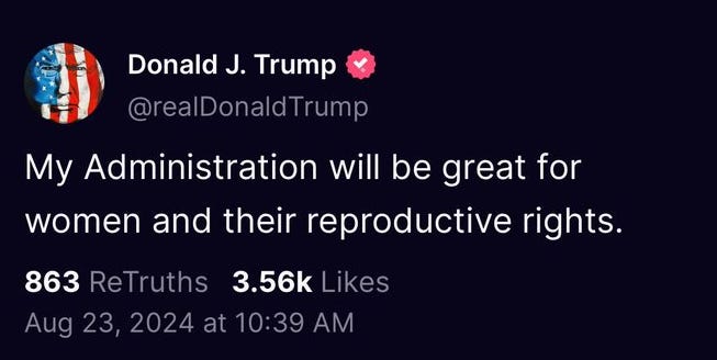 By the way, guess who’s apparently all-in on abortion again? On Friday morning, Trump finally finished throwing the pro-life movement under the bus by declaring his “great” support for women’s “reproductive rights,” the Left’s preferred phrase for abortion access.