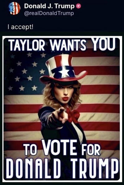 Every day last week, he said or did something transparently desperate in his quest to win back the White House, including glomming onto popular individuals and trends. It began Sunday with him pretending that pop-culture sensation Taylor Swift, who had been rumored to appear at the DNC, had endorsed him for president.