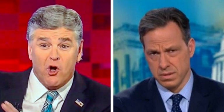 But Sean Hannity's prime-time show on Fox had yet to air that night, and when it did, Hannity was feeling less than conciliatory. Using a wimpish voice, Hannity mocked "liberal fake news CNN’s fake Jake Tapper" (as he put it) for saying that the phrase in question can be used in "beautiful circumstances."