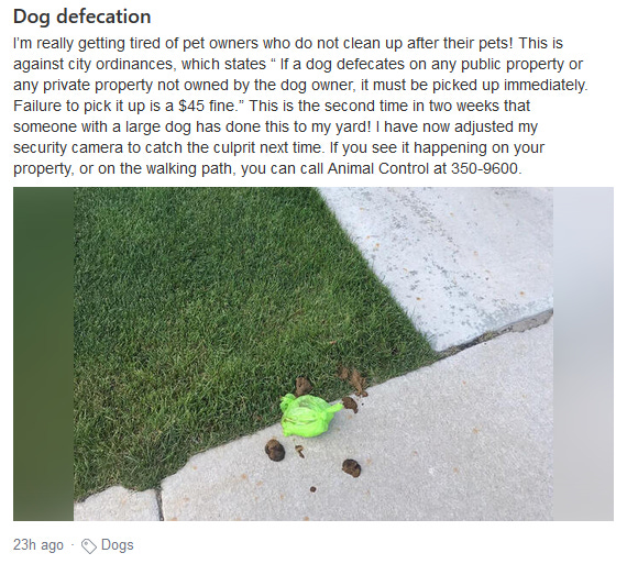 Then there's the Nextdoor T.M.I. crowd, who, when voicing some gripe about the neighborhood, tends to include a little too much information. Here's a post from just yesterday: