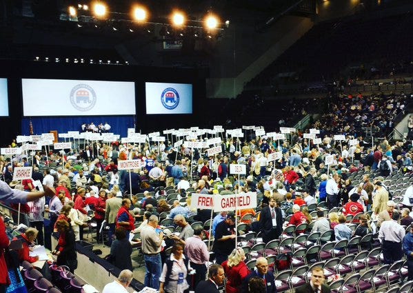 Reality: The only people "sidelined" were those who didn't (or couldn't) show up on caucus night (which has been the case for several years). Those in attendance got to vote for people who shared their voting preference. And if they didn't find such people, they had the option of running themselves.
