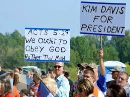 “It’s no surprise that Republican presidential candidates Ted Cruz and Mike Huckabee weighed in on behalf of Ms. Davis. Governor Huckabee, for his part, tweeted ‘Kim Davis in federal custody removes all doubts about the criminalization of Christianity in this country. We must defend Religious Liberty!’