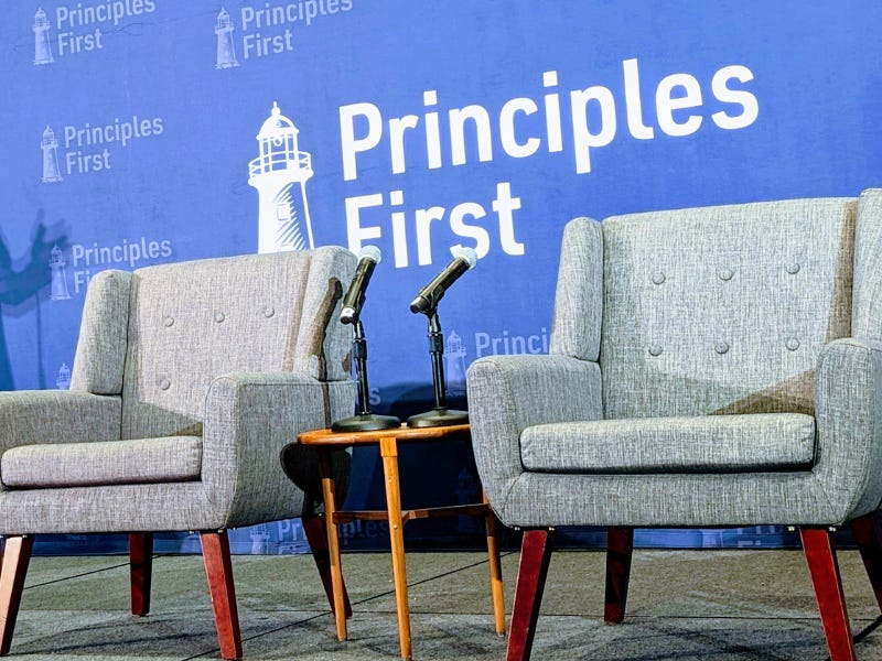 Who I admire are the holdouts — the relatively small group of principled conservatives in politics and the political media who didn’t let the MAGA era break or ruin them. I pay attention to what those individuals say, I cite and subscribe to their work, and I’m fortunate to have even gotten to know a number of them personally. So, when there’s an opportunity to meet some of that crowd, I try to take advantage of it. That’s what got me interested in this year’s Principles First Summit.