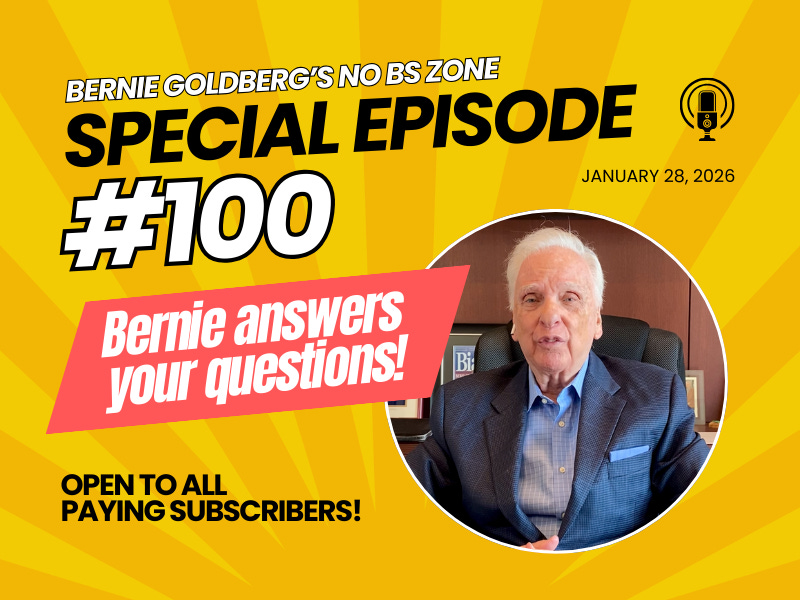 Next week, we’ll be recording episode #100 of Bernie Goldberg’s No BS Zone. It will drop on the morning of Wednesday, January 28 (on this website, YouTube, Spotify, and Apple Podcasts).