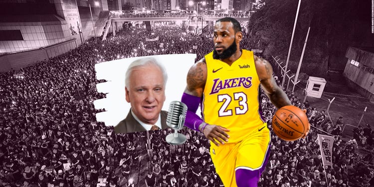 Bernie Goldberg's No BS ZoneOff the Cuff: LeBron James and China0:00Current time: 0:00 / Total time: -4:18-4:18Paid episodeThe full episode is only available to paid subscribers of Bernard Goldberg's CommentarySubscribe to listenOff the Cuff: LeBron James and ChinaBernard GoldbergOct 20, 2019∙ PaidShareIn a special Monday edition of my Off the Cuff audio commentary, I share some thoughts on LeBron James and his controversial comments regarding China.Listen to this episode with a 7-day free trialSubscribe to Bernard Goldberg's Commentary to listen to this post and get 7 days of free access to the full post archives.Start trialAlready a paid subscriber? Sign inBernie Goldberg's No BS ZoneLongtime, award-winning journalist Bernie Goldberg analyzes politics, the media, and American culture with co-host John A. Daly.Longtime, award-winning journalist Bernie Goldberg analyzes politics, the media, and American culture with co-host John A. Daly.SubscribeListen onSubstack AppApple PodcastsSpotifyRSS FeedAppears in episodeBernard GoldbergRecent EpisodesHegseth Under Fire, the Fate of Ukraine, and Trump's UnpopularityDec 2 • Bernard Goldberg and John A. DalyWhat the Epstein Files May (or May Not) RevealNov 18 • Bernard GoldbergCongressional Dysfunction, Antisemitism, and Economic Tone DeafnessNov 11 • Bernard Goldberg and John A. DalyThe Poison on the Right Nov 4 • Bernard GoldbergBallrooms, Boats, and BitternessOct 28 • Bernard Goldberg and John A. DalyTrust in the Traditional Media Fades... While Trust in the Bias-Confirming Media SoarsOct 22 • Bernard GoldbergTrump's Peace Deal AchievementOct 14 • Bernard Goldberg and John A. DalyBad Bunny, the Super Bowl, and ICEOct 7 • Bernard Goldberg