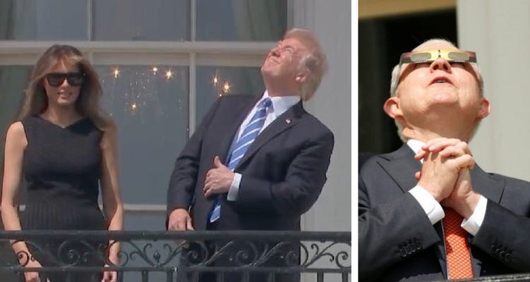 There were many more, but the picture that quickly went viral was one of President Trump himself, standing alongside wife Melania and son Barron on the Truman Balcony at the White House. In the shot, Trump is shown staring directly up at the sun...with nothing protecting his eyes.