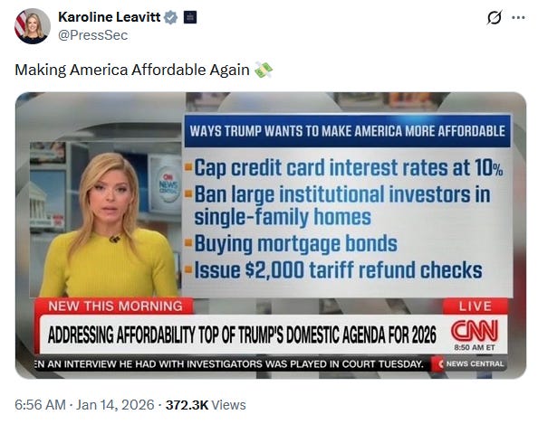 Did you see the Karoline Leavitt’s X-post on Trump’s affordability agenda? Did Bernie Sanders hack her account? 😂 — Alex D.