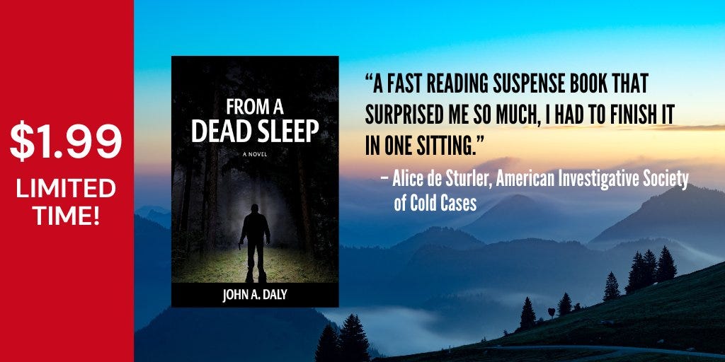 Before I get started this week, I noticed last night that my first book “From a Dead Sleep” is currently just $1.99 on Kindle! It’s the first novel in my Sean Coleman Thriller series, and I hope you check it out at this great price (if you haven’t already).
