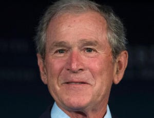 These stories are in reference to a promotional tour Bush is on for "Portraits of Courage," a book of his artwork, featuring 66 paintings of military veterans. While appearing on news networks to discuss the book, hosts have naturally been asking Bush about current events and the state of our nation's politics. And some of the liberal interviewers having been doing everything they can to get Bush to slam President Trump.