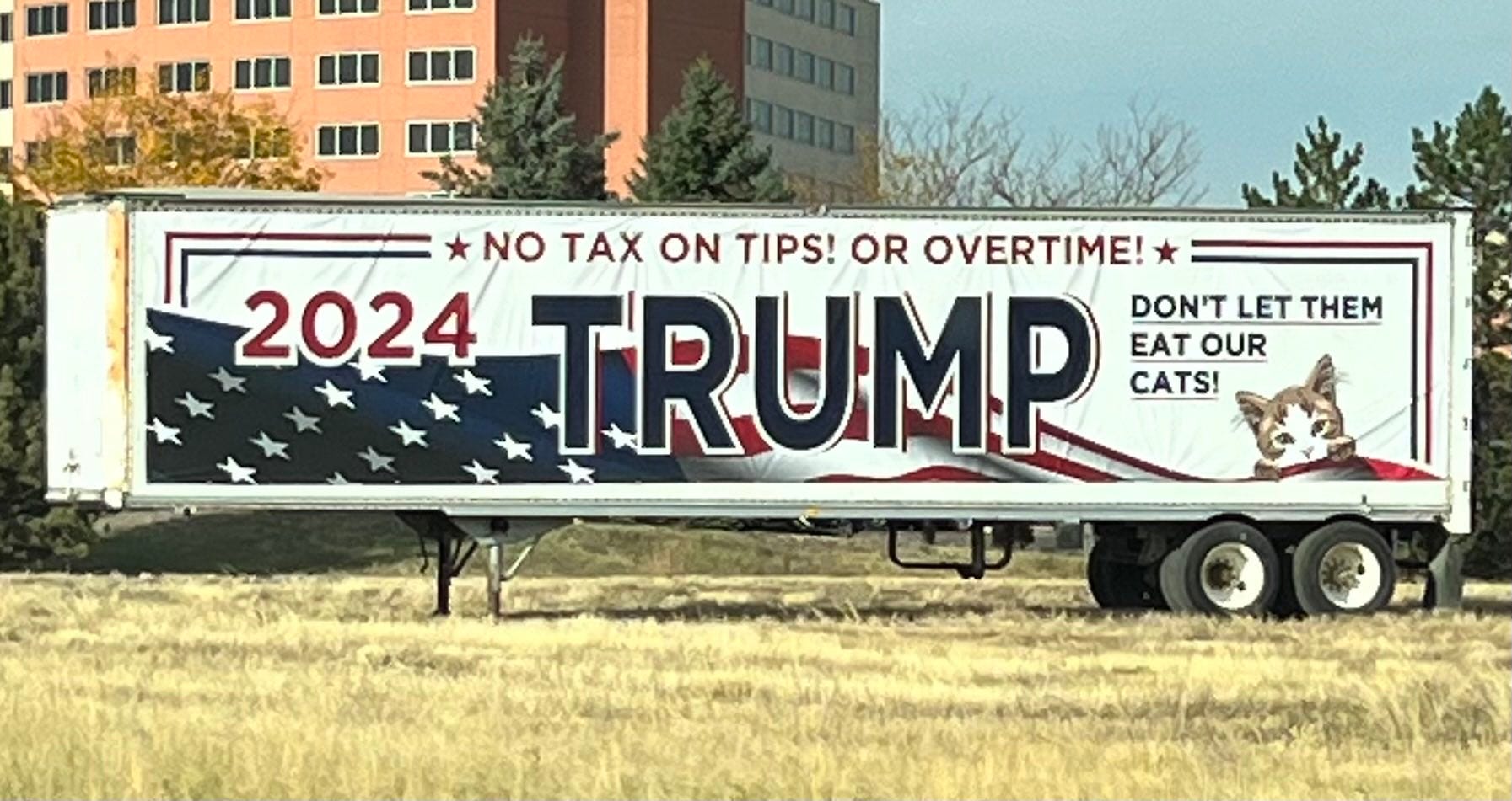 It was enough to keep the politically self-serving fear-strategy intact all the way up until election day, including on Trump campaign material. Heck, I drove past this very semi-trailer (and at least two more just like it) here in Northern Colorado numerous times. They were parked along Interstate-25 and major highways through November 5th.