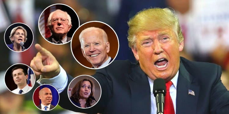 41% is Trump's average favorability in the head-to-head match-ups, with front-runner Joe Biden leading him by a whopping 53-40. Trump doesn't fare much better against less popular candidates like Kamala Harris and Pete Buttigieg.