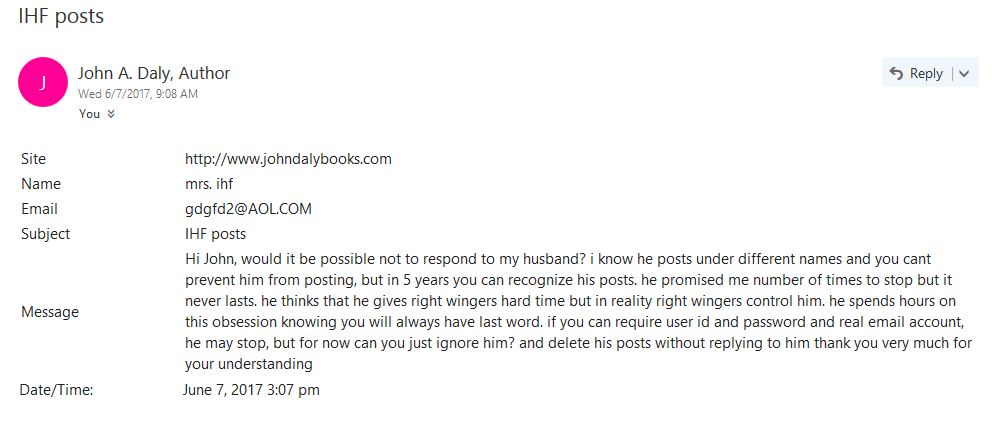 Sadly, some of these individuals didn't go quietly. In fact, some of them never really went away at all. Stripping them of their capacity to post comments here inexplicably left a hole in their souls that may never heal, as evidenced by their continued online hounding of us writers from beyond the website.