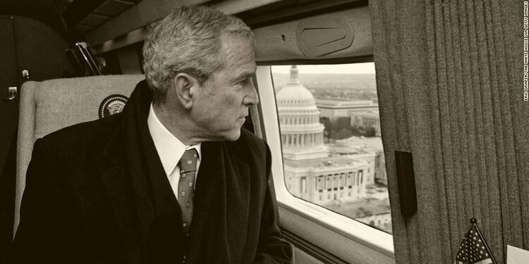 It wasn’t just that one incident, of course, that served as a testament to President George W. Bush’s dignity and decency. There were other things, pre 9/11, that I believe helped heal our divided electorate, including Bush’s humbleness in victory, his unwillingness to go low against political opponents, and his work to build relationships with people on the other side of the aisle (even as they trashed him in public).